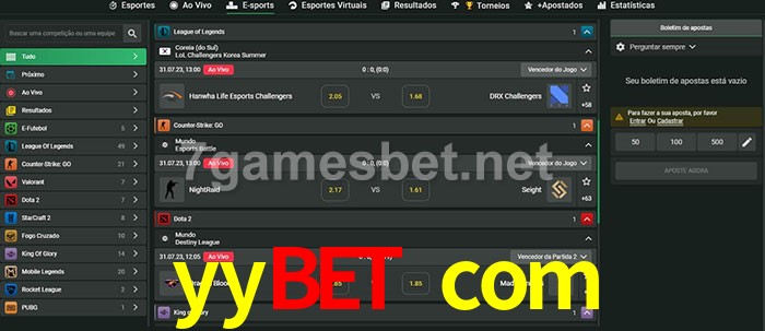 O yybet com oferece uma grande seleção de opções de apostas em e-sports com probabilidades competitivas